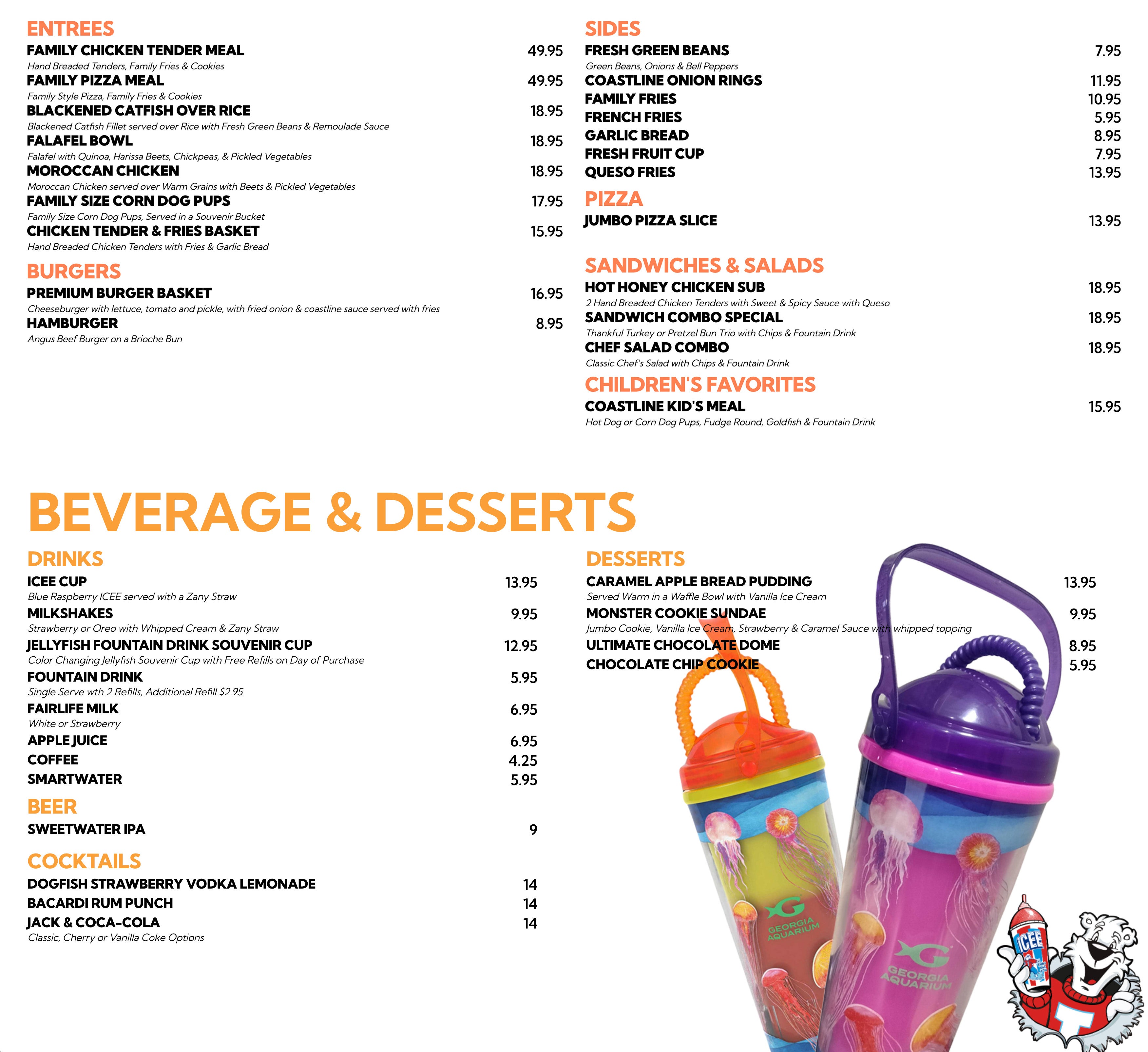 Take a break from your Aquarium adventure and dive into a delicious meal at Coastline Café, conveniently located on the upper level of the Georgia Aquarium. This casual dining spot is the perfect place to relax and recharge with a satisfying bite.